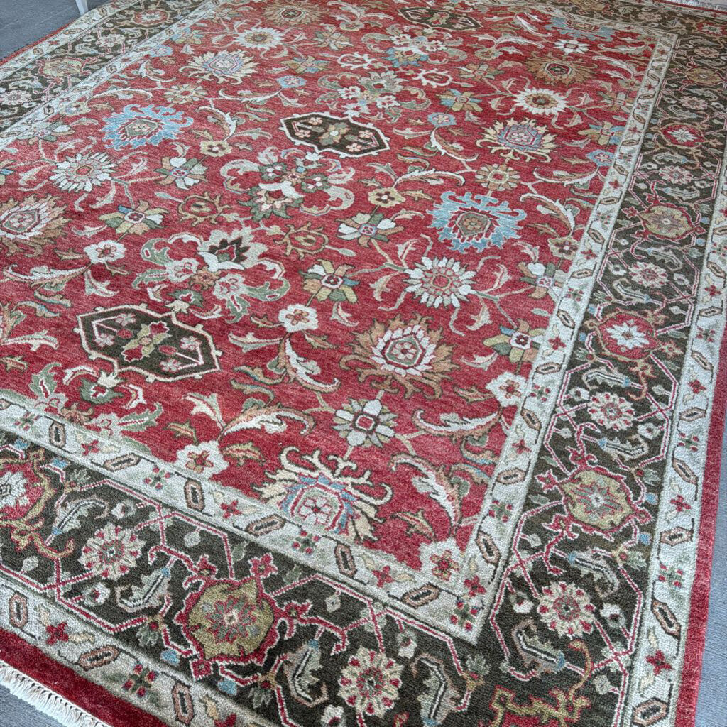 RUG 9X12 CORAL OLIVE BLUE